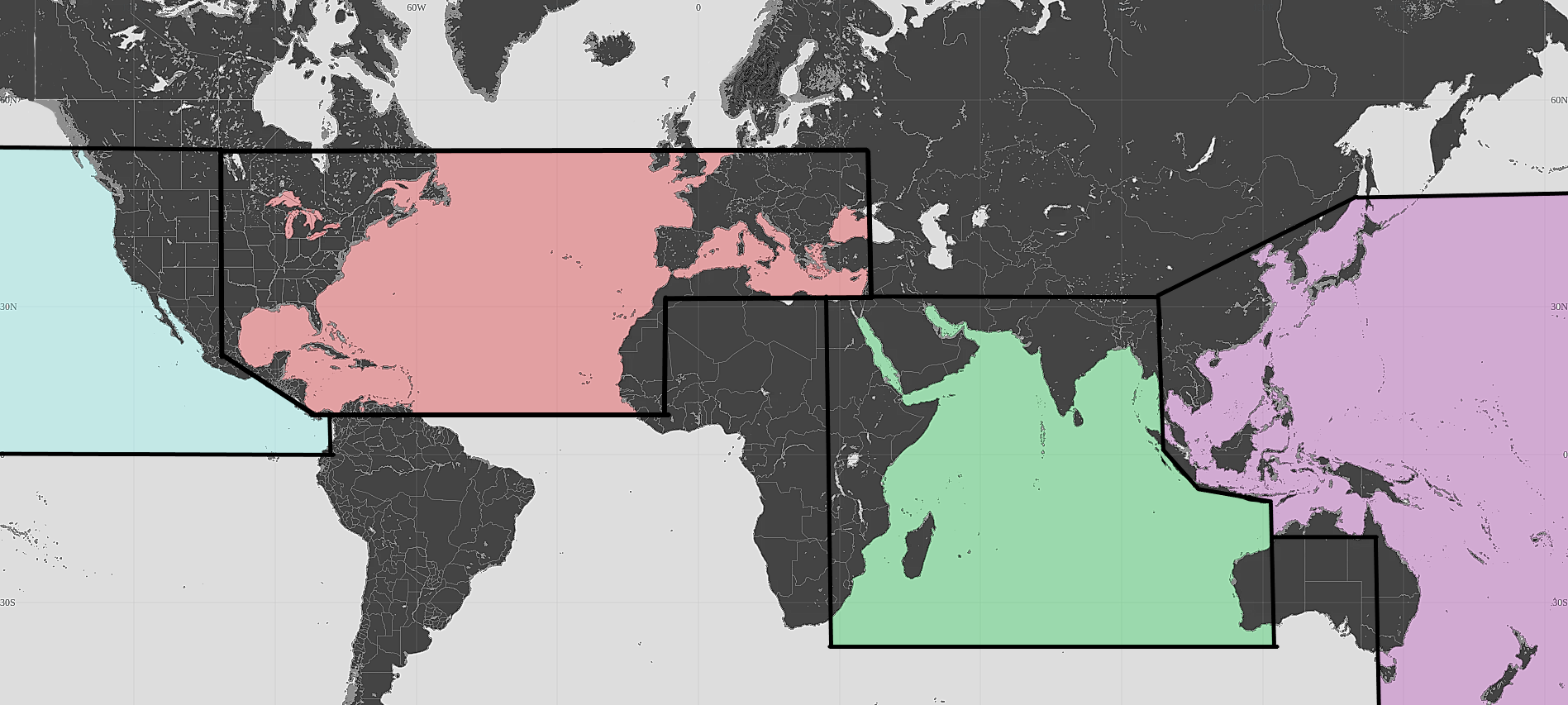Figure 1: The newly implemented JWLA-033 extending from the Persian/Arabian Gulf, Red Sea, and to the Indian Ocean.